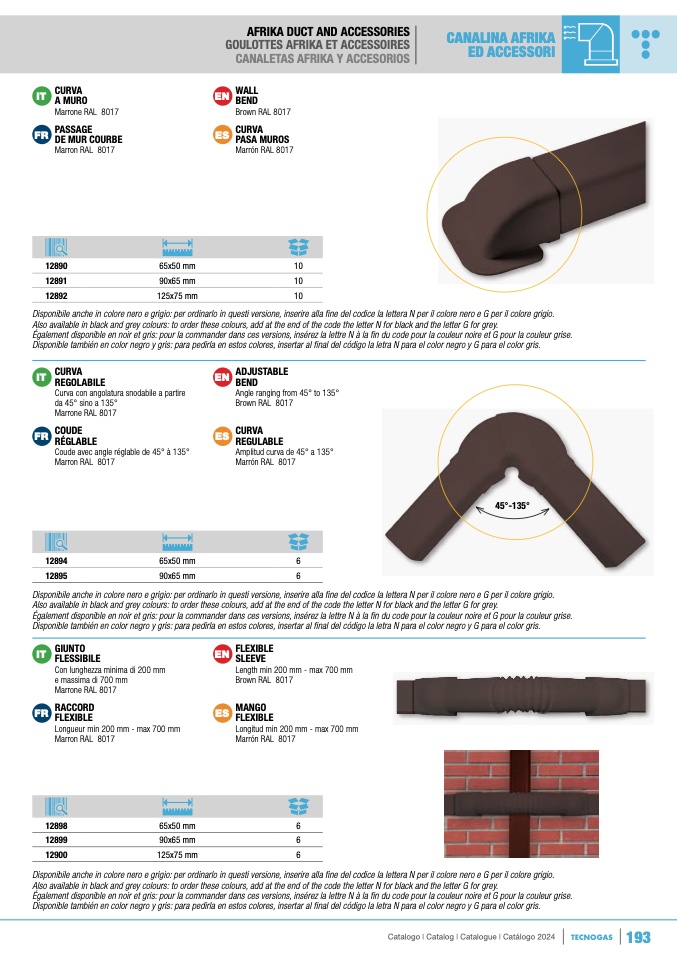 Also available in black and grey colours: to order these colours, add at the end of the code the letter N for black and the letter G for grey.