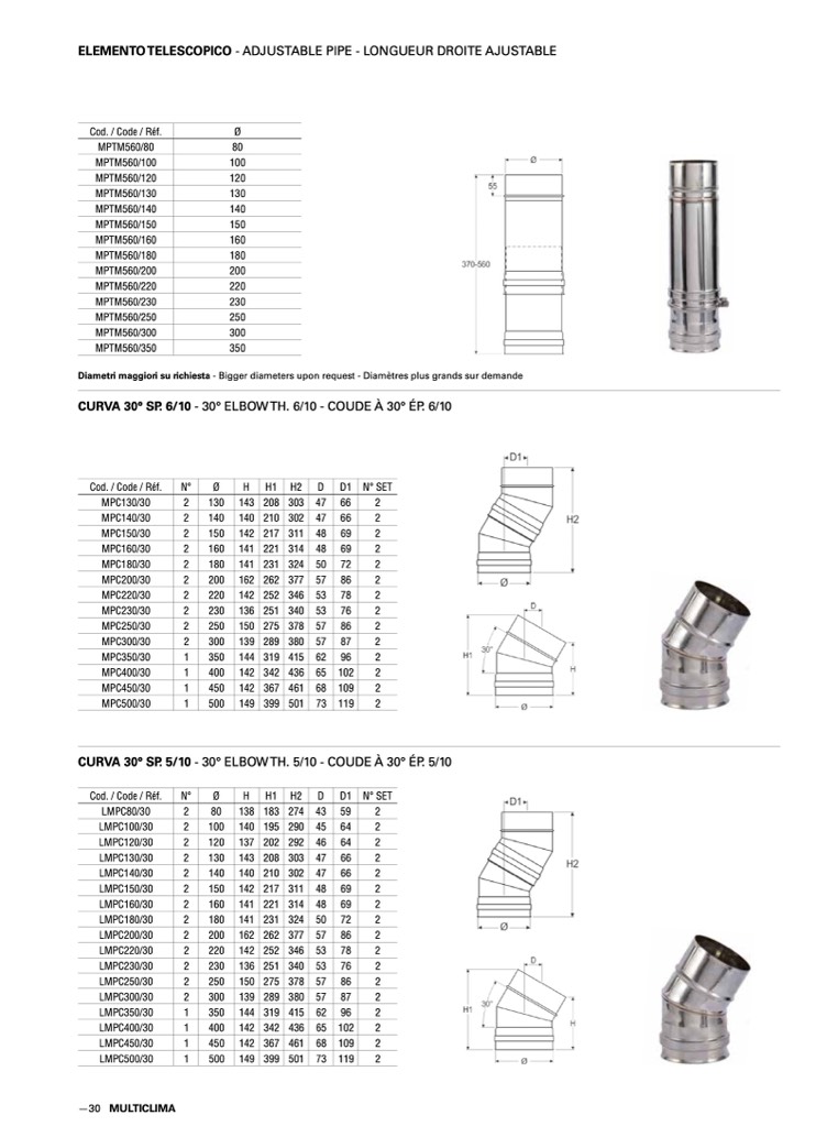 CURVA 30° SP. 6/10 - 30° ELBOW TH. 6/10 - COUDE À 30° ÉP. 6/10