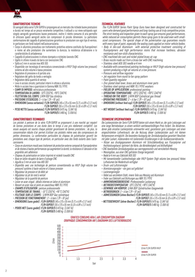 Les pistolet á peinture de la série F1/N-SUPER se proponsernt à une marché qui requiert