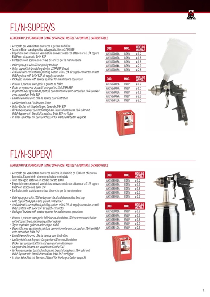 AEROGRAFO PER VERNICIATURA | PAINT SPRAY GUN | PISTOLET A PEINTURE | LACKIERPISTOLE