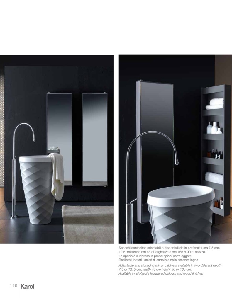 Specchi contenitori orientabili e disponibili sia in profondità cm 7,5 che