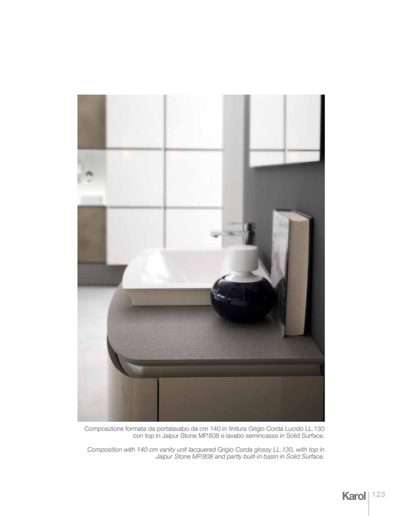 con top in Jaipur Stone MP.808 e lavabo semincasso in Solid Surface.