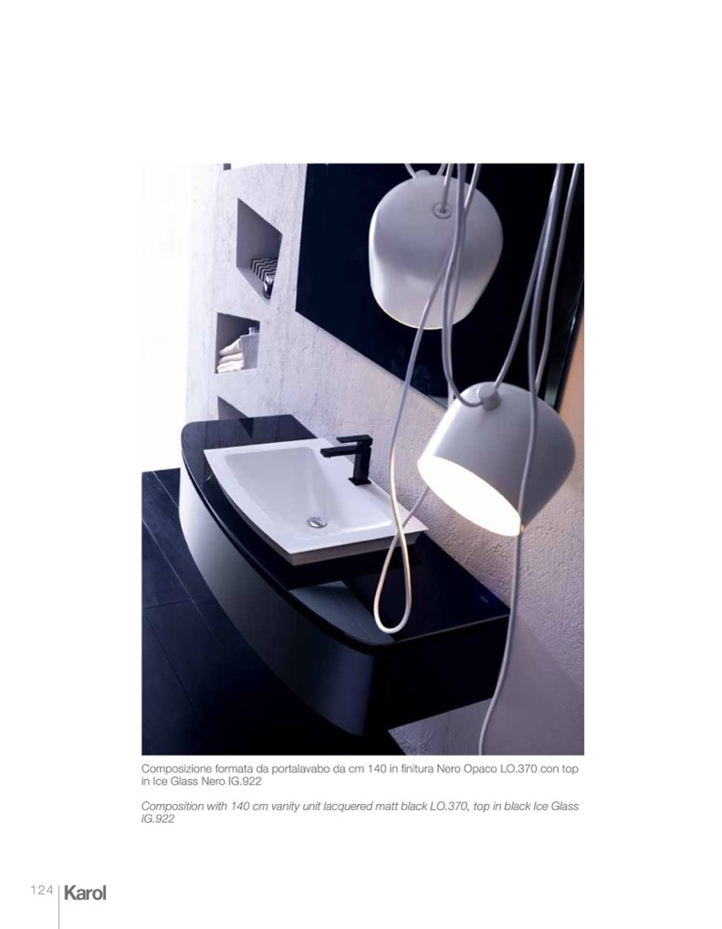 Composition with 140 cm vanity unit lacquered matt black LO.370, top in black Ice Glass