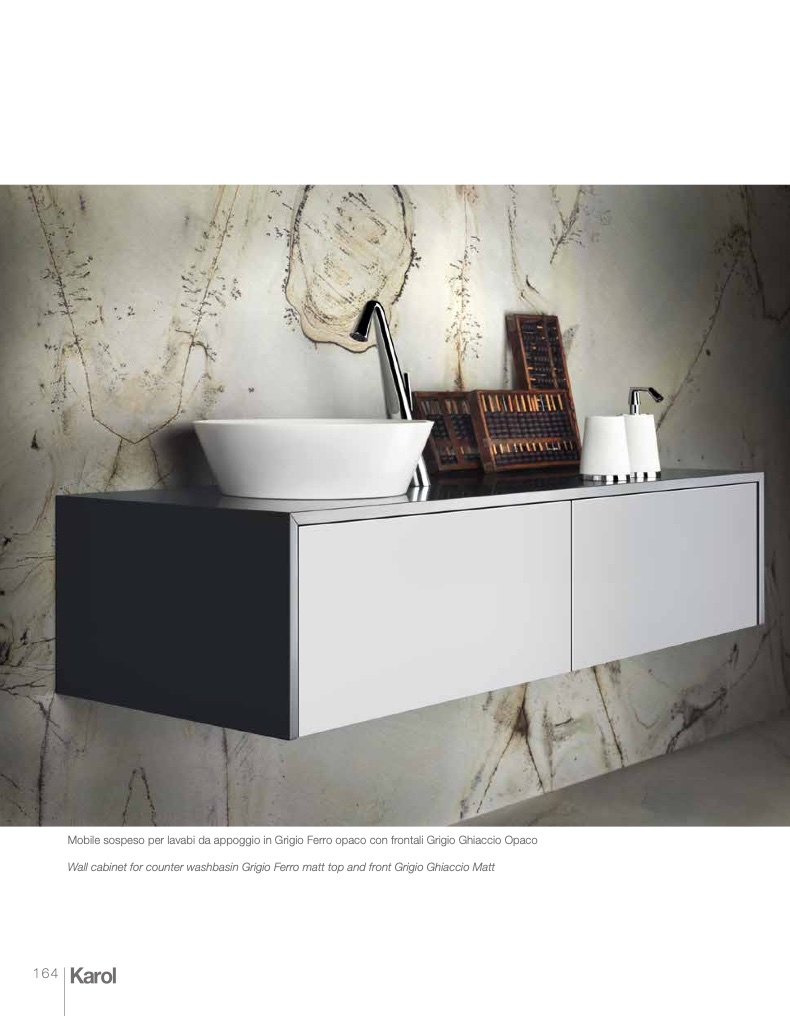 Wall cabinet for counter washbasin Grigio Ferro matt top and front Grigio Ghiaccio Matt