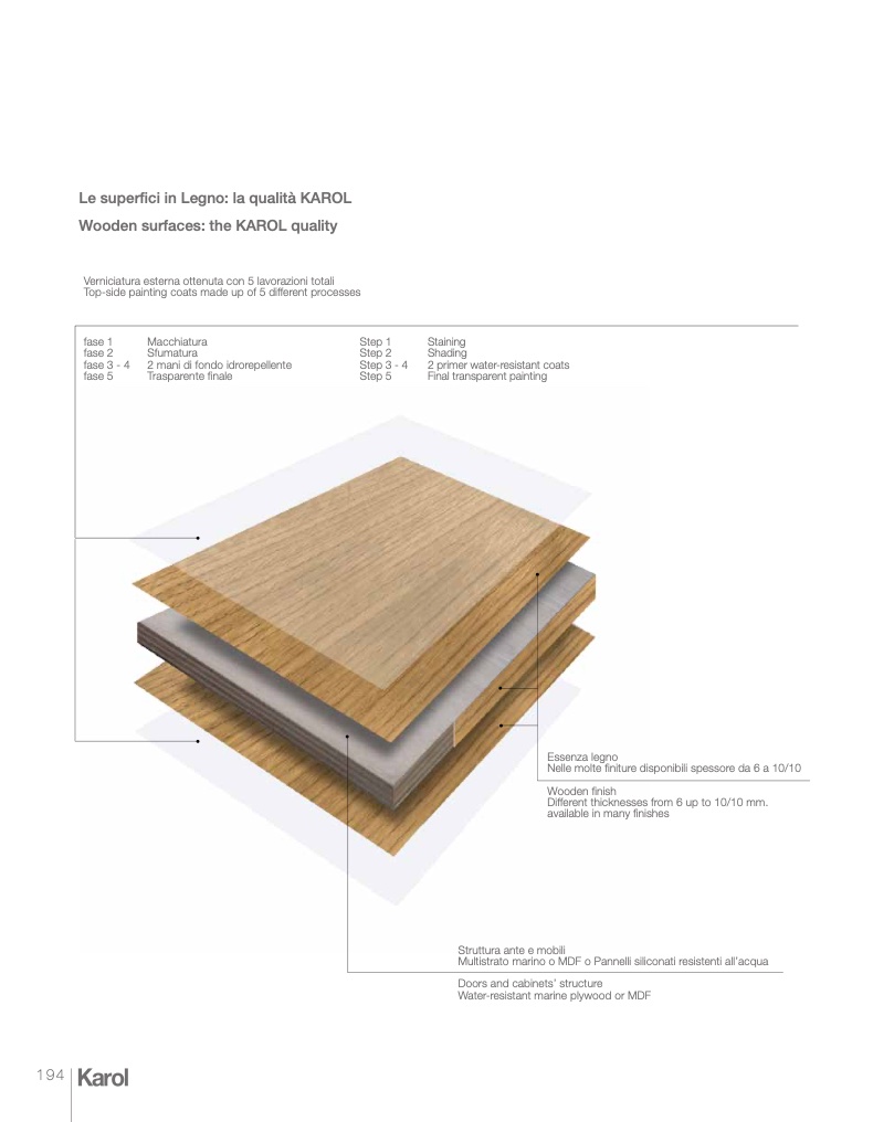Verniciatura esterna ottenuta con 5 lavorazioni totali