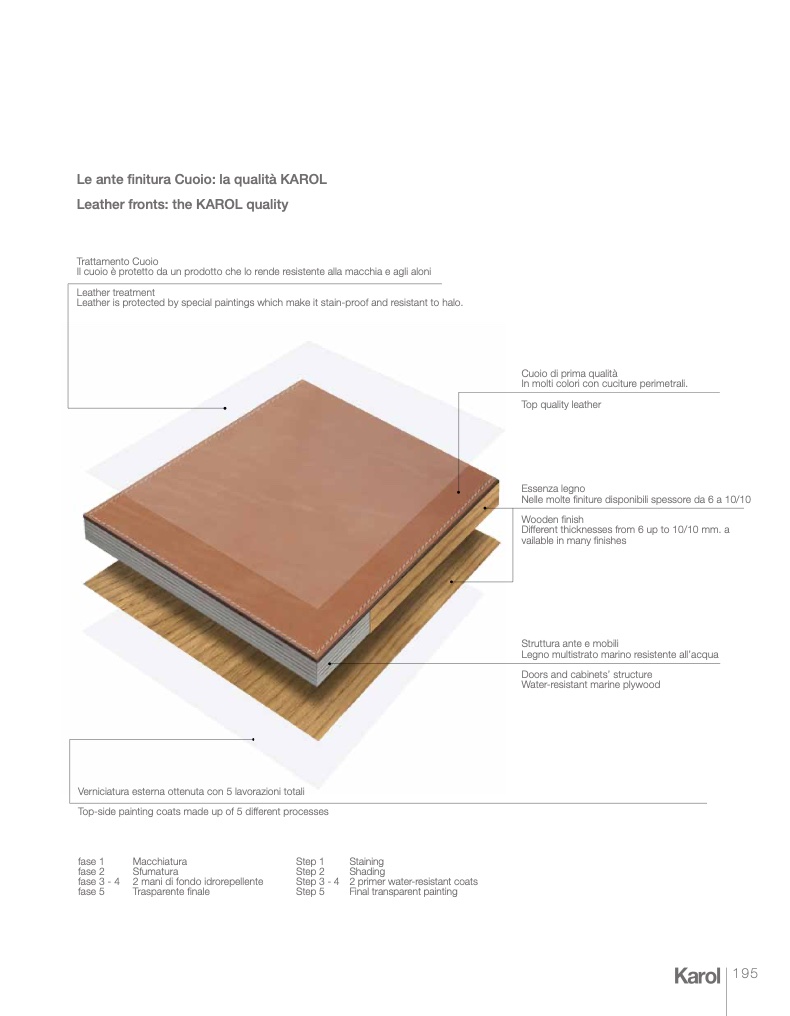 Leather is protected by special paintings which make it stain-proof and resistant to halo.