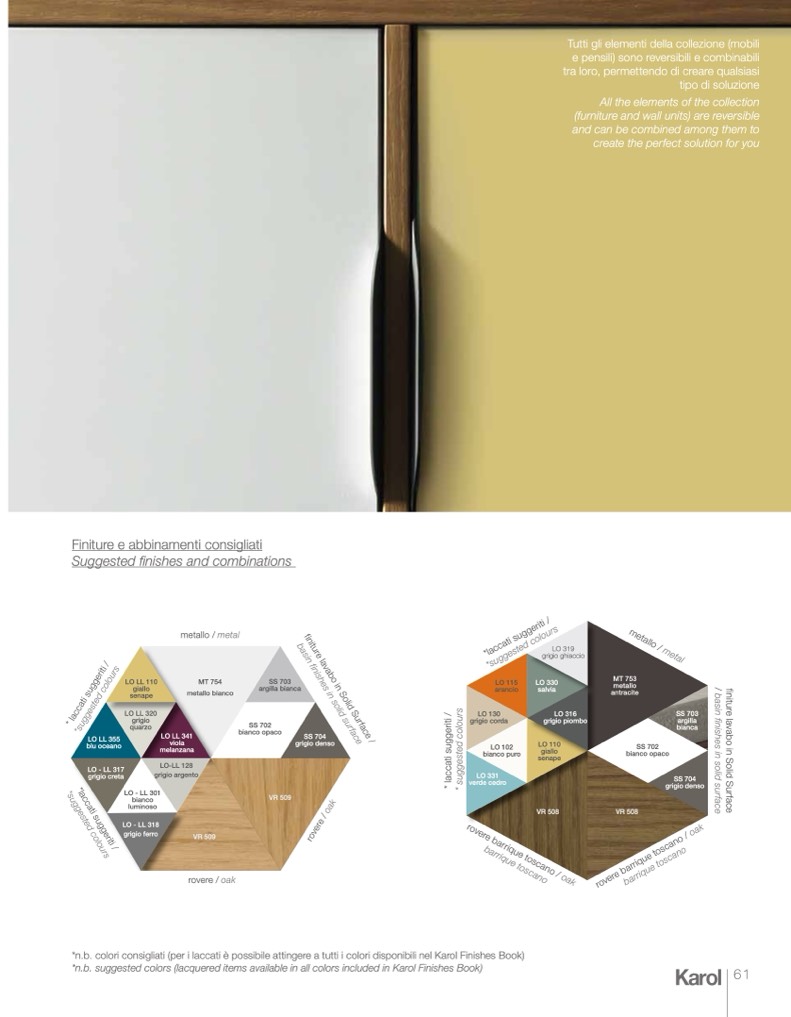 *n.b. colori consigliati (per i laccati è possibile attingere a tutti i colori disponibili nel Karol Finishes Book)