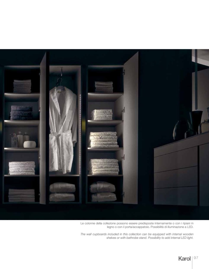 shelves or with bathrobe stand. Possibility to add internal LED light.