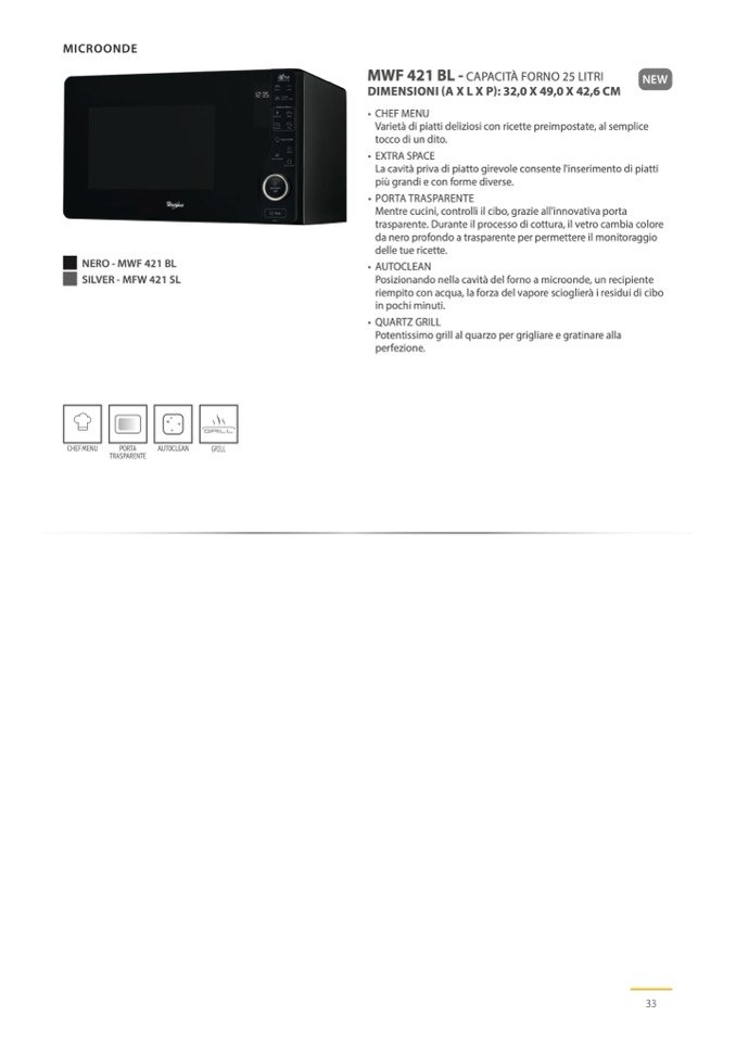La cavità priva di piatto girevole consente l'inserimento di piatti