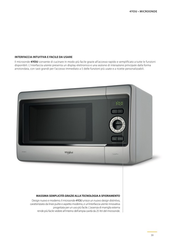 Design nuovo e moderno. Il microonde 4YOU unisce un nuovo design distintivo,