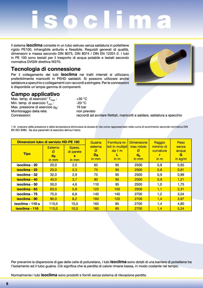 Il sistema isoclima consiste in un tubo estruso senza saldatura in polietilene