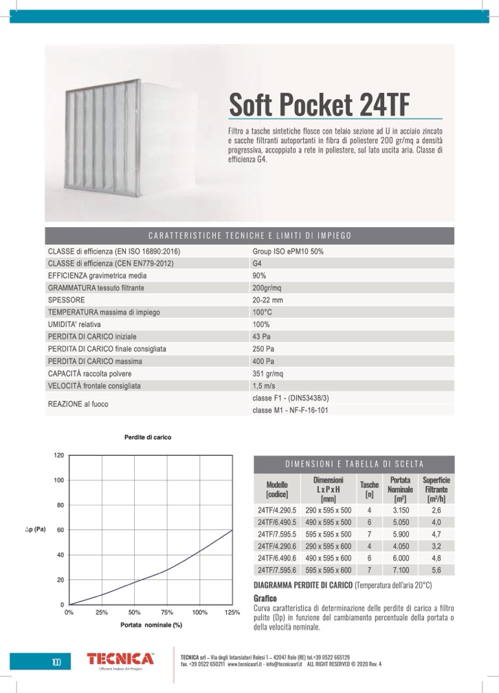 progressiva, accoppiato a rete in poliestere, sul lato uscita aria. Classe di