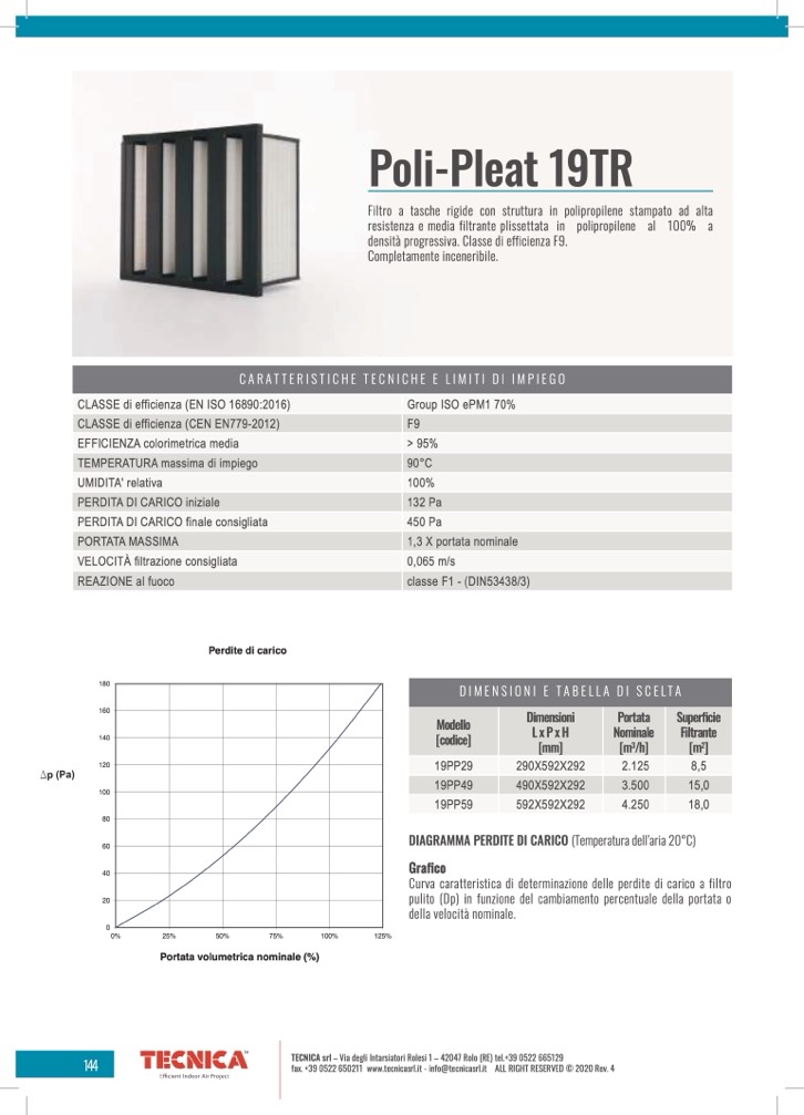 resistenza e media filtrante plissettata in polipropilene al 100% a