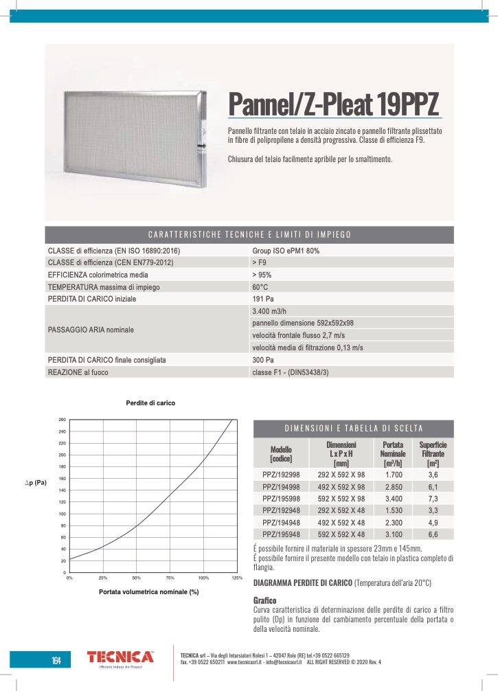 in fibre di polipropilene a densità progressiva. Classe di efficienza F9.