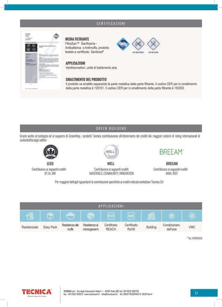 Grazie anche al sostegno ed al supporto di GreenMap, i prodotti Tecnica contribuiscono all’ottenimento dei crediti dei maggiori sistemi di rating internazionali di