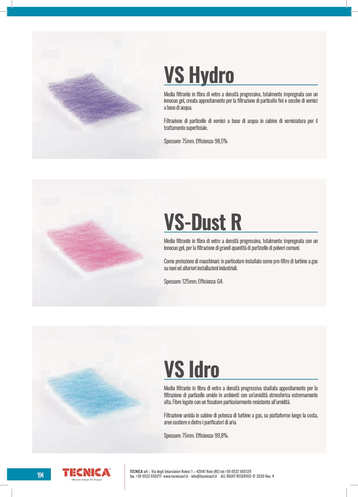 Media filtrante in fibra di vetro a densità progressiva studiata appositamente per la