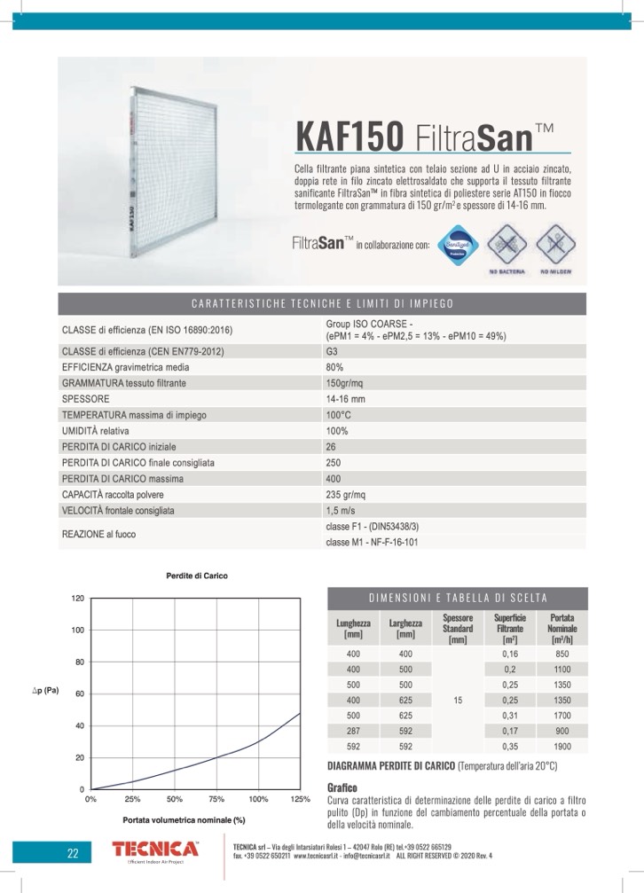 sanificante FiltraSanTM in fibra sintetica di poliestere serie AT150 in fiocco