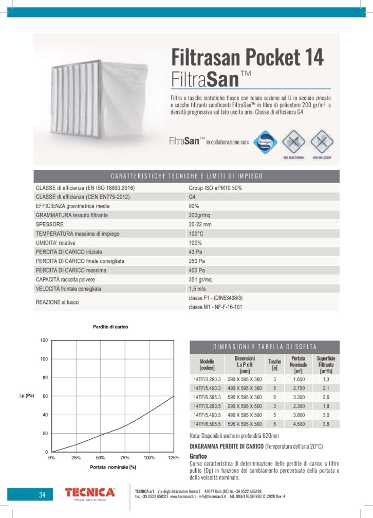 e sacche filtranti sanificanti FiltraSanTM in fibra di poliestere 200 gr/m