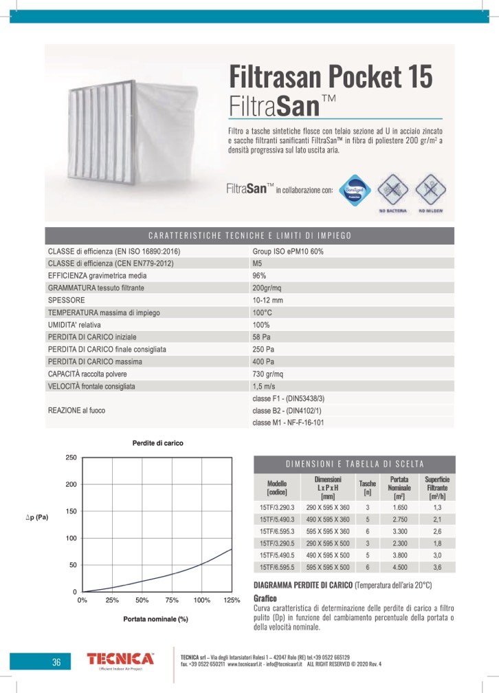 e sacche filtranti sanificanti FiltraSanTM in fibra di poliestere 200 gr/m