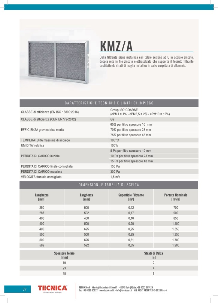 Cella filtrante piana metallica con telaio sezione ad U in acciaio zincato,