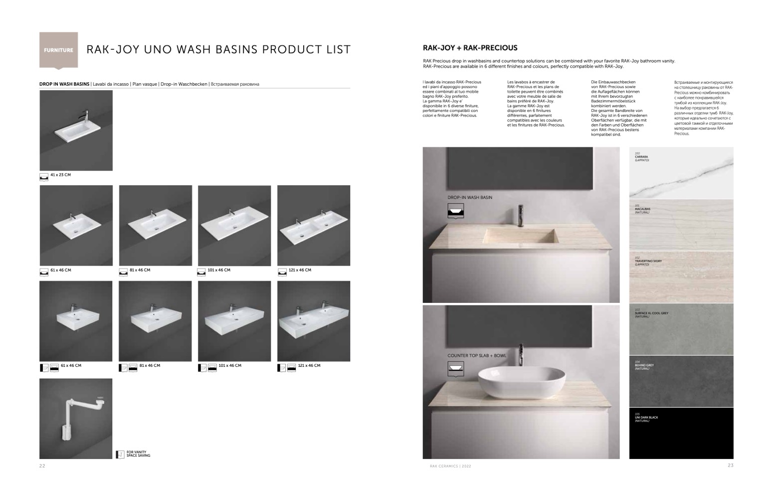 различных отделки тумб RAK-Joy,