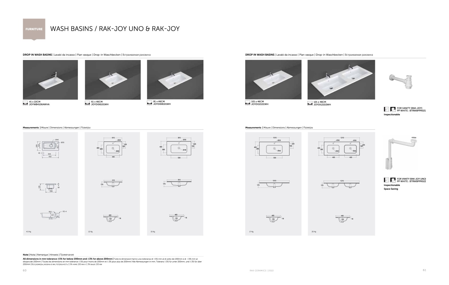 3% for above 200mm | Tutte le dimensioni hanno una tolleranza di 5% mm al di sotto dei 200mm e di