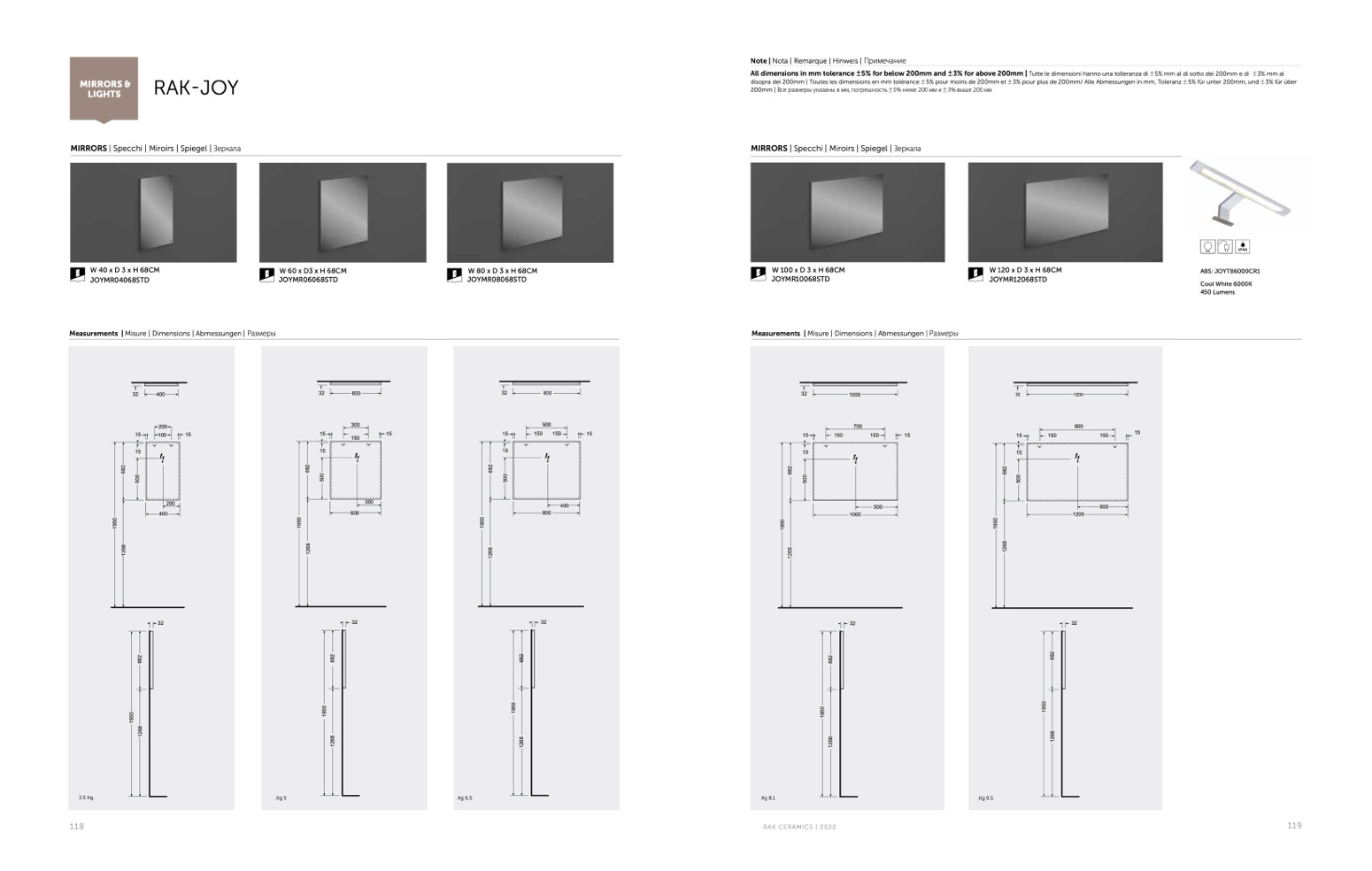 Measurements | Misure | Dimensions | Abmessungen | Размеры
