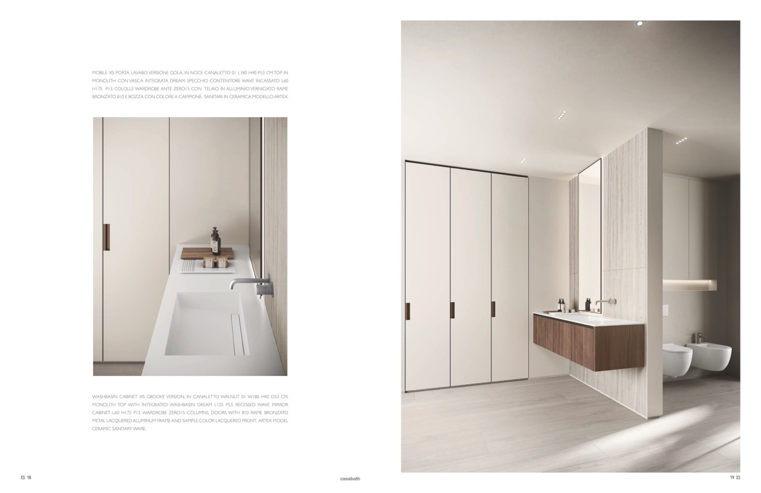 WASHBASIN CABINET XS GROOVE VERSION, IN CANALETTO WALNUT 01 W180 H40 D53 CM.
