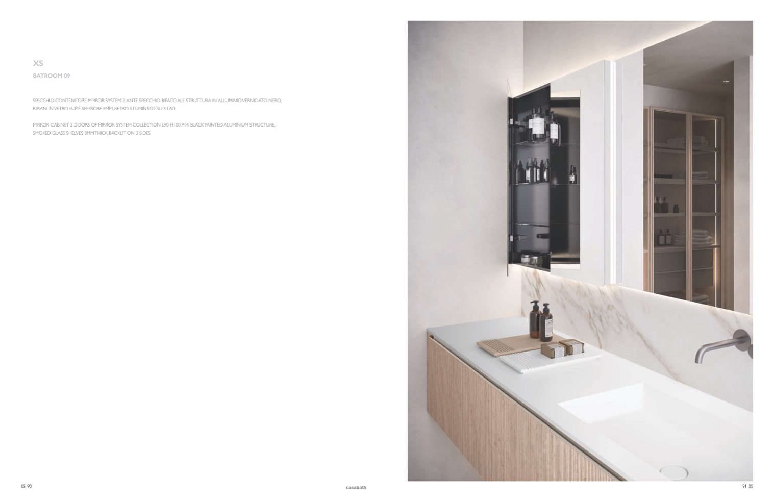 MIRROR CABINET 2 DOORS OF MIRROR SYSTEM COLLECTION L90 H100 P14. BLACK PAINTED ALUMINIUM STRUCTURE,