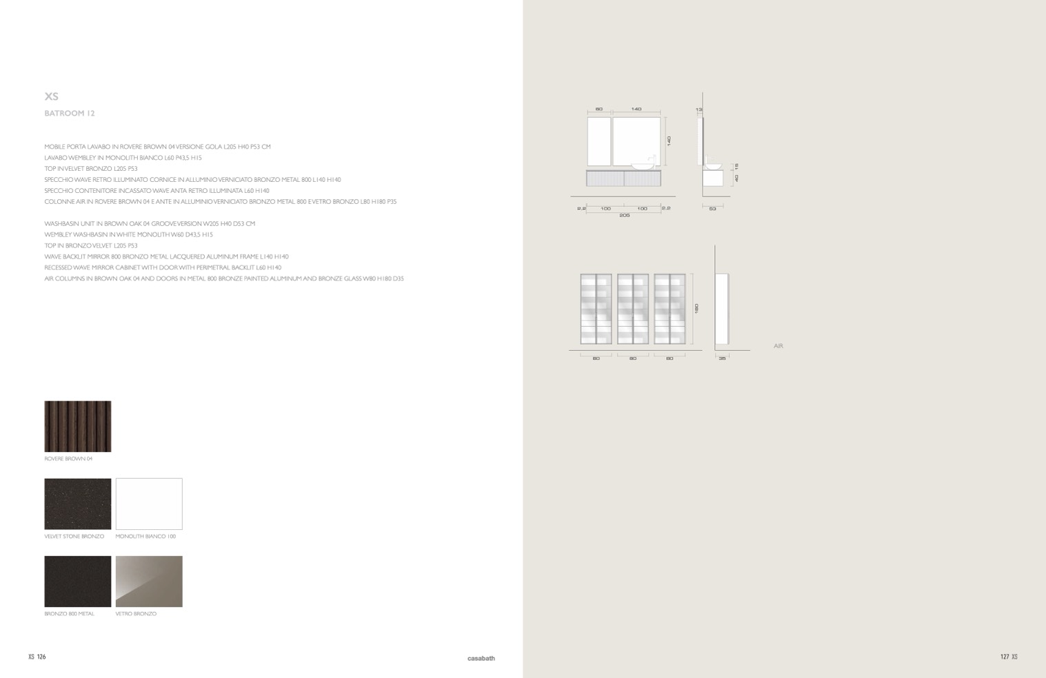 AIR COLUMNS IN BROWN OAK 04 AND DOORS IN METAL 800 BRONZE PAINTED ALUMINUM AND BRONZE GLASS W80 H180 D35
