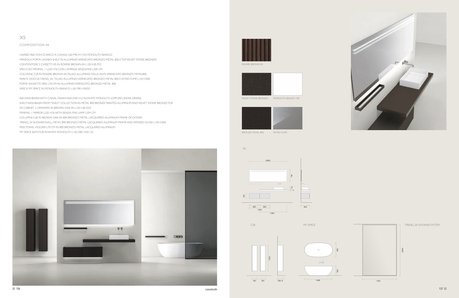 COLONNE C28 IN ROVERE BROWN 04, TELAIO ALLUMINIO DELLE ANTE VERNICIATO BRONZO METAL800