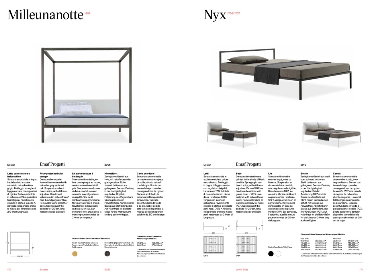 * Dimensioni del materasso/Mattress sizes/Dimensions du matelas/Abmessungen