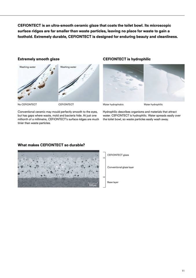 water. CEFIONTECT is hydrophilic. Water spreads easily over