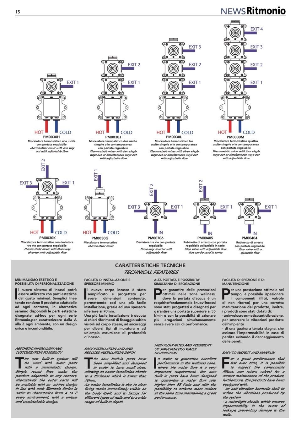 Miscelatore termostatico due uscite
