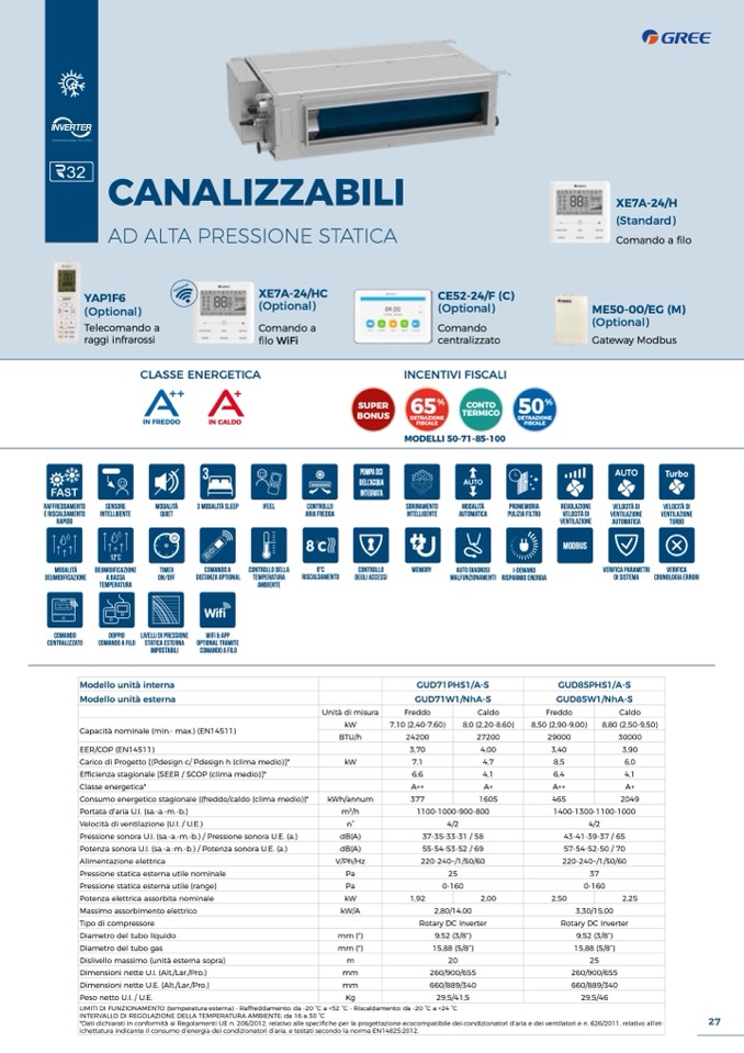 LIMITI DI FUNZIONAMENTO (temperatura esterna) - Raffreddamento: da -20 °C a +52 °C - Riscaldamento: da -20 °C a +24 °C