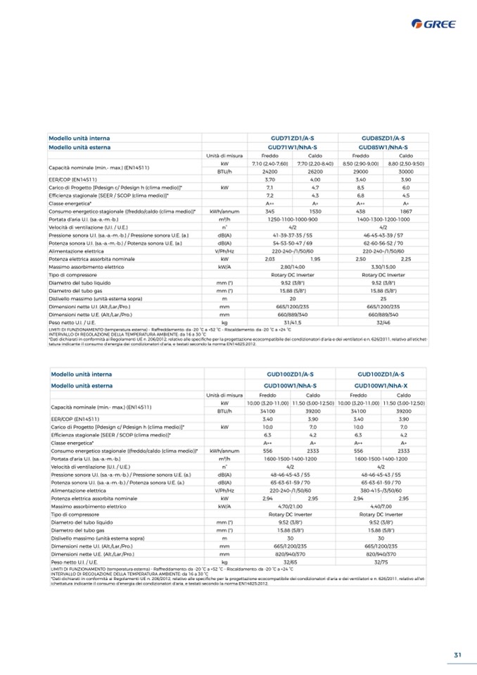 *Dati dichiarati in conformità ai Regolamenti UE n. 206/2012, relativo alle specifiche per la progettazione ecocompatibile dei condizionatori d’aria e dei ventilatori e n. 626/2011, relativo all’et-
