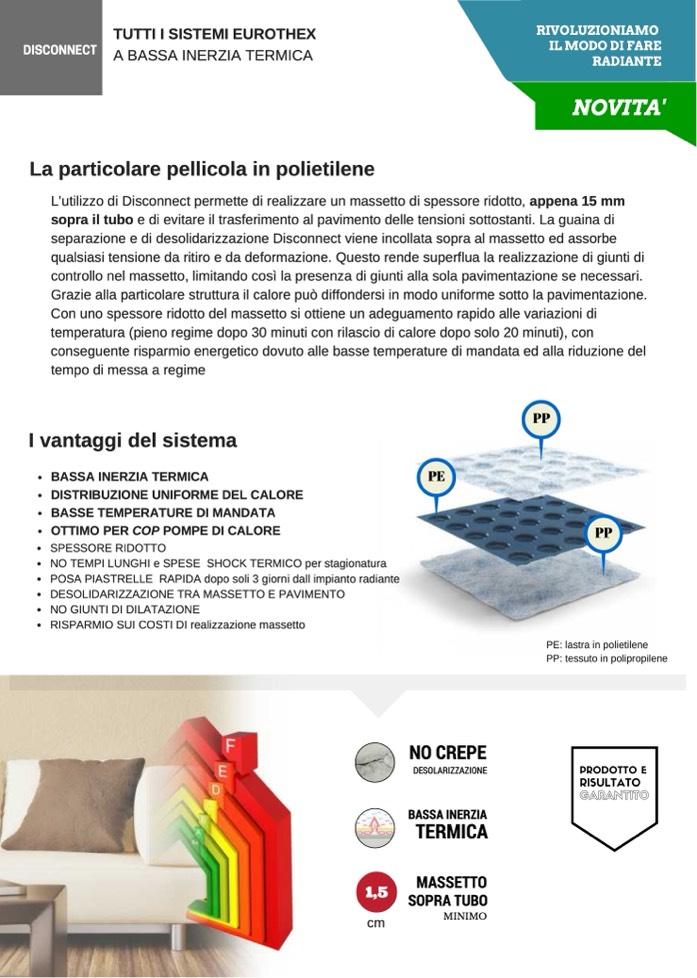 L’utilizzo di Disconnect permette di realizzare un massetto di spessore ridotto, appena 15 mm