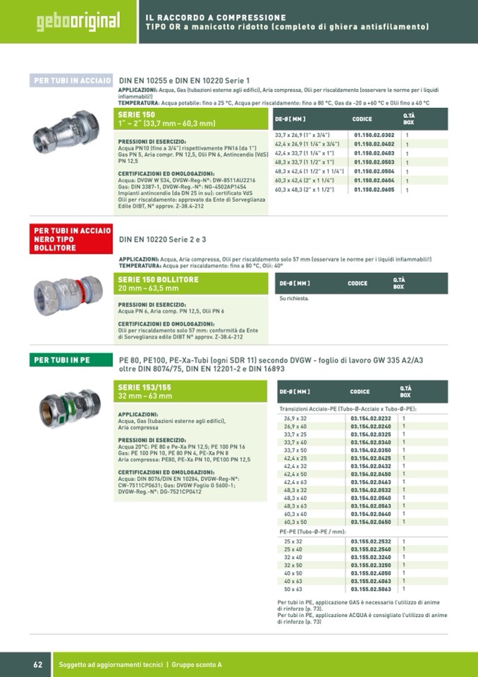 Acqua: DIN 8076/DIN EN 10284, DVGW-Reg-N°:
