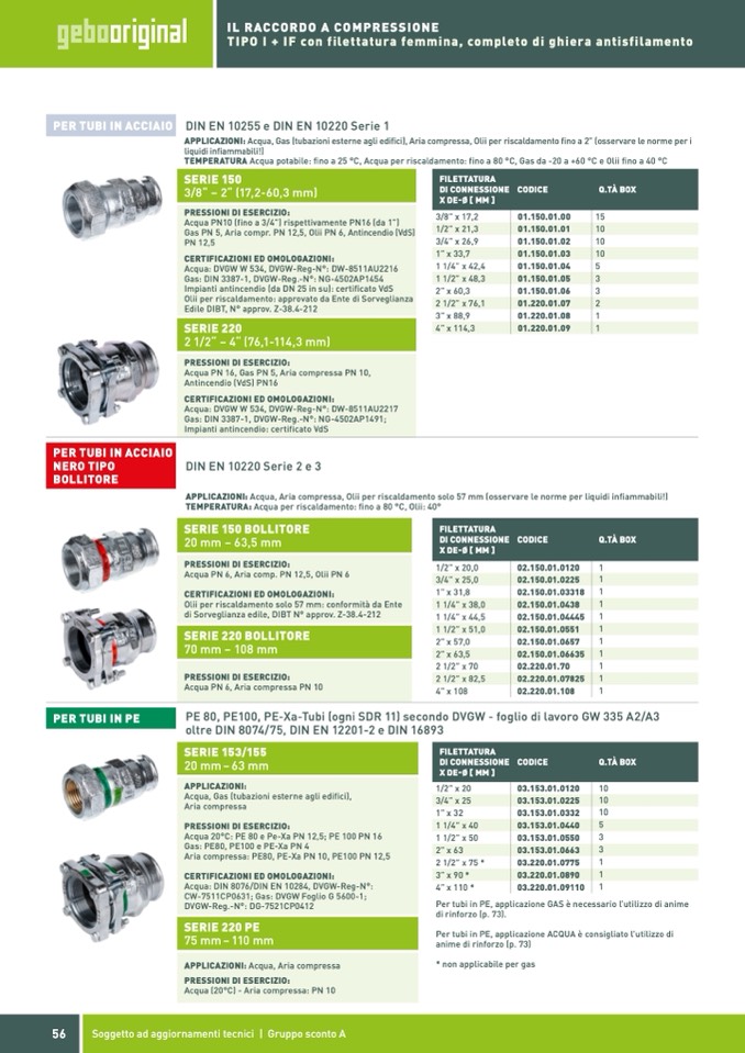 Acqua: DIN 8076/DIN EN 10284, DVGW-Reg-N°: