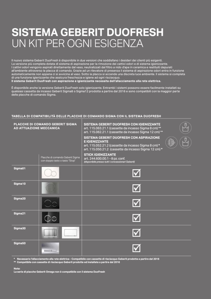 TABELLA DI COMPATIBILITÀ DELLE PLACCHE DI COMANDO SIGMA CON IL SISTEMA DUOFRESH