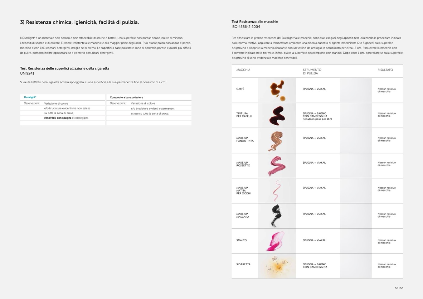 alle macchie, sono stati eseguiti degli appositi test utilizzando la procedura indicata
