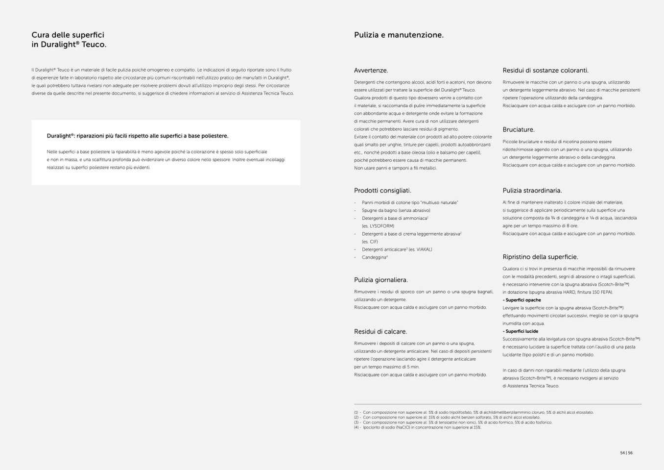 Teuco è un materiale di facile pulizia poiché omogeneo e compatto. Le indicazioni di seguito riportate sono il frutto
