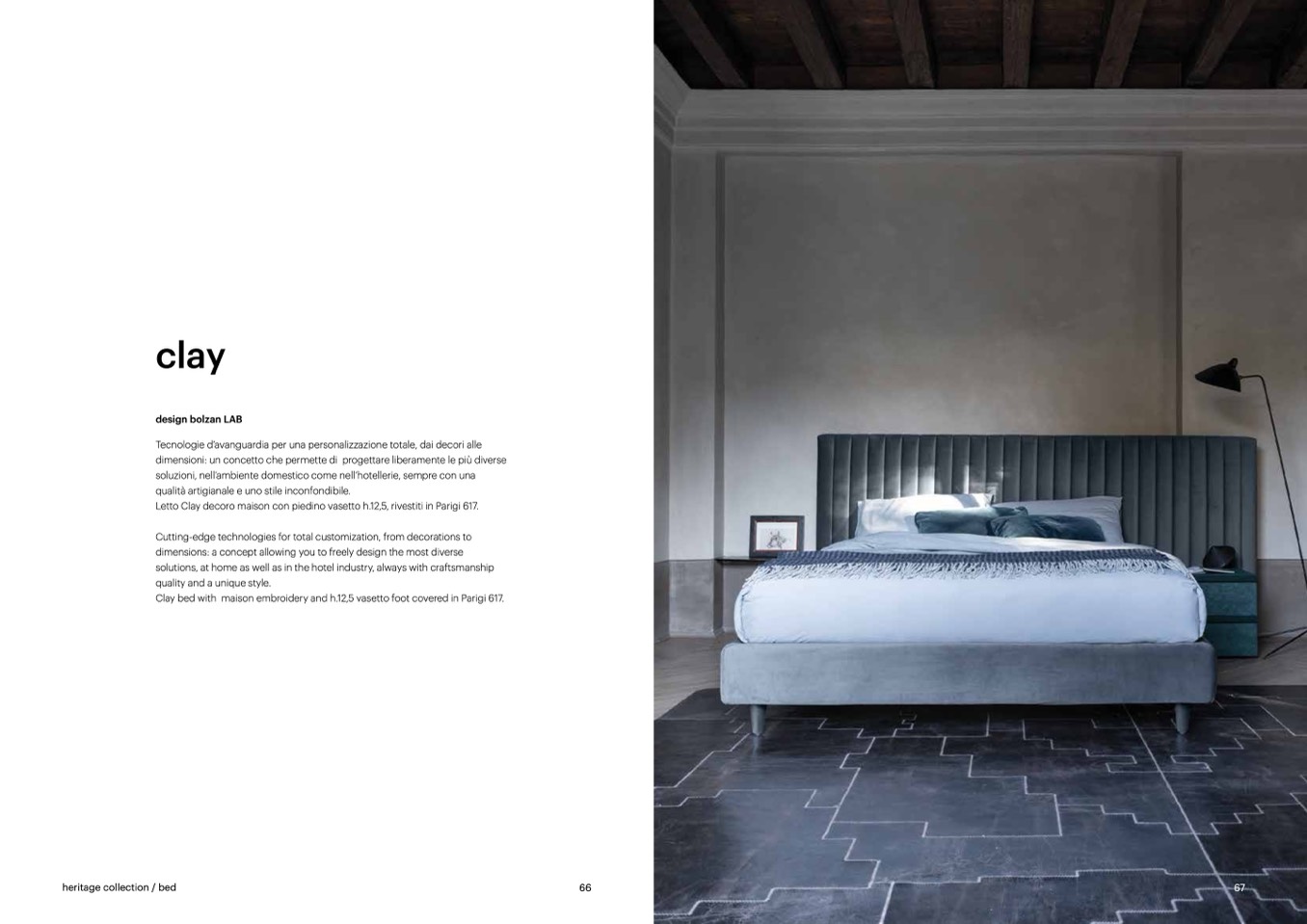 Clay bed with maison embroidery and h.12,5 vasetto foot covered in Parigi 617.