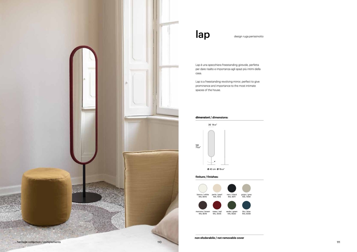 Lap è una specchiera freestanding girevole, perfetta