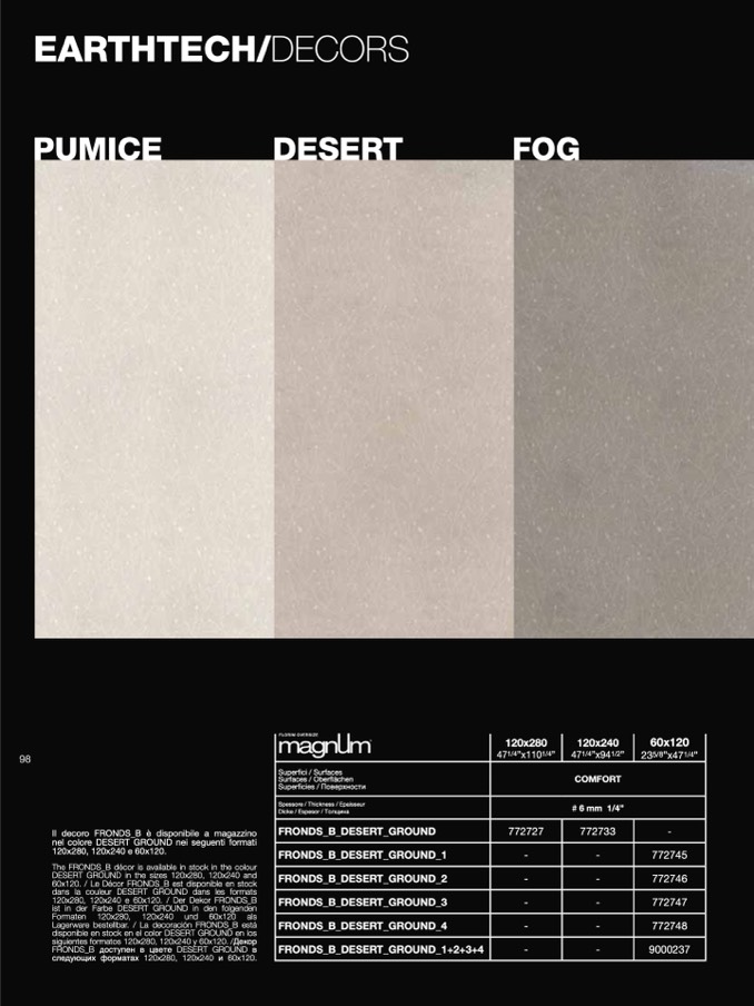 120x280, 120x240 e 60x120. / Der Dekor FRONDS_B