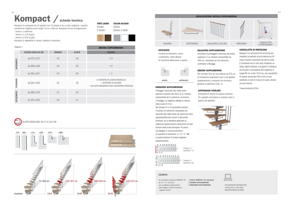 completi di ringhiera sono larghi 74 cm o 89 cm. Kompact ha tre configurazioni: