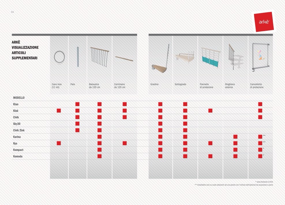 ** Installabile solo su scale adiacenti ad una parete con l’utilizzo dell’optional da acquistare a parte