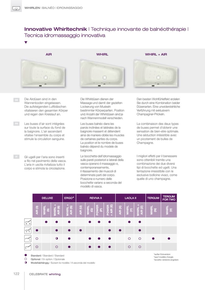 Modellabhängig / Suivant le modèle / A seconda del modello