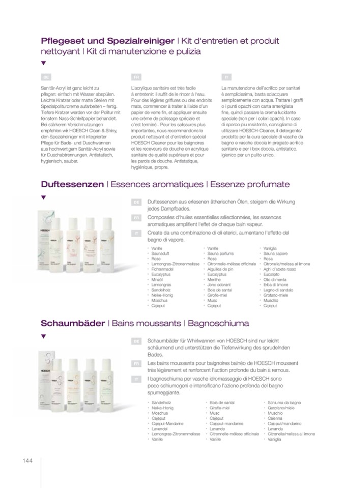I bagnoschiuma per vasche idromassaggio di HOESCH sono
