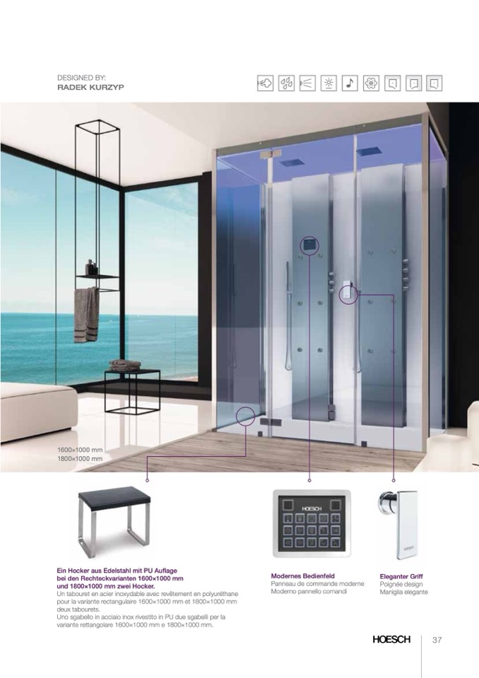 pour la variante rectangulaire 1600×1000 mm et 1800×1000 mm